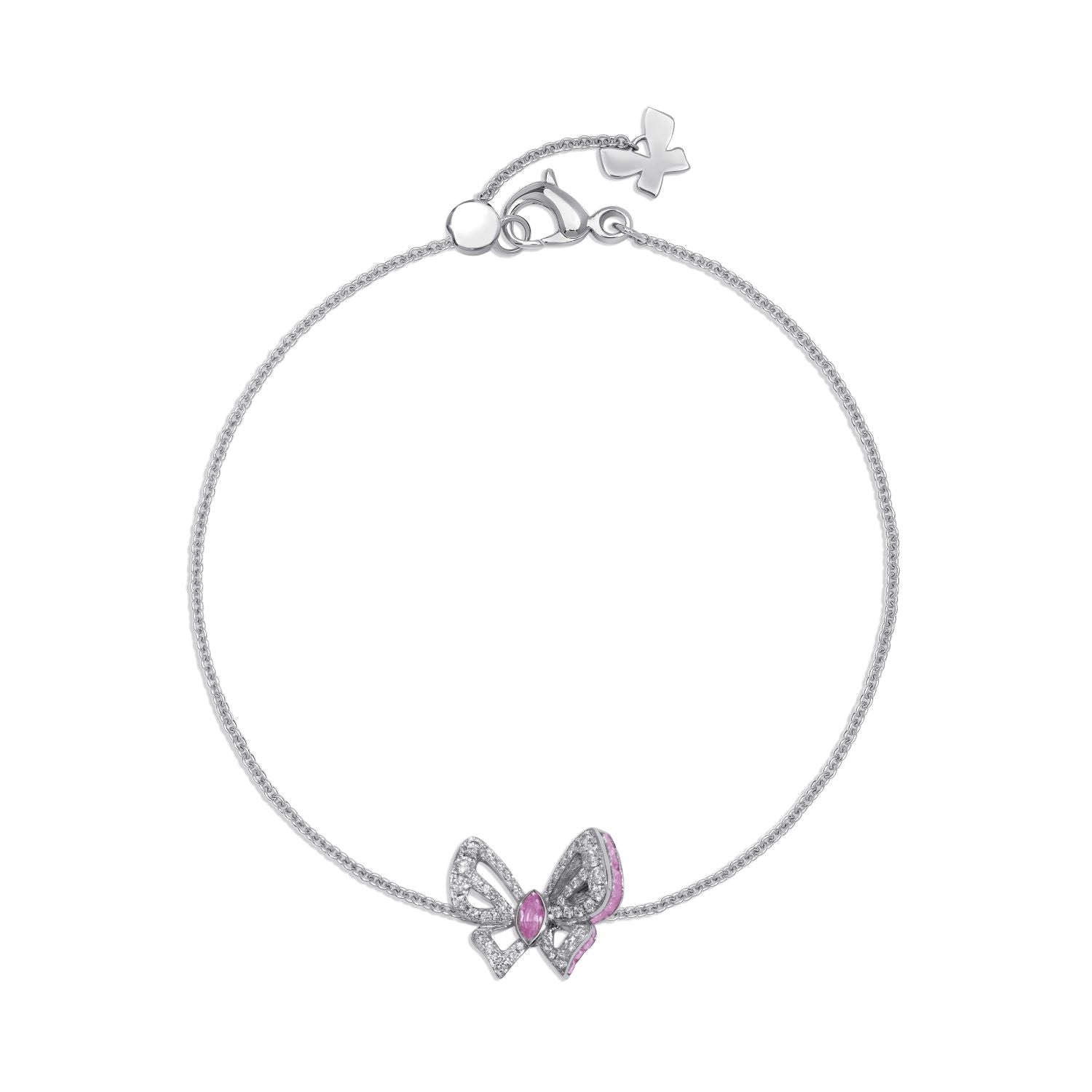 Die Flügel sind mit funkelnden Mikro-Pavé-Diamanten besetzt und auf einer Seite mit einer feinen Linie channel-set Farbsteine akzentuiert.