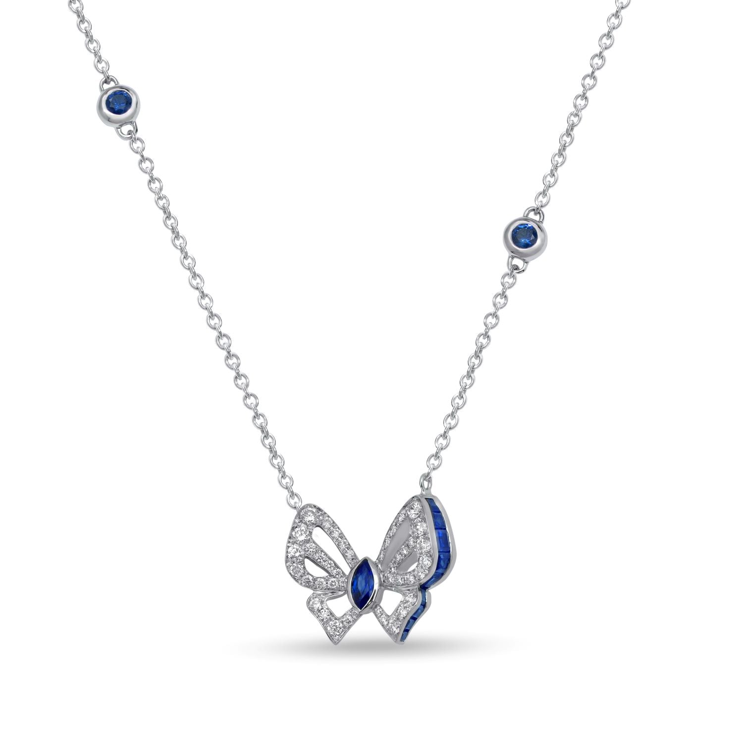Der Körper des Schmetterlings wird durch einen einzelnen Marquise-Schliff in farbigem Edelstein dargestellt.