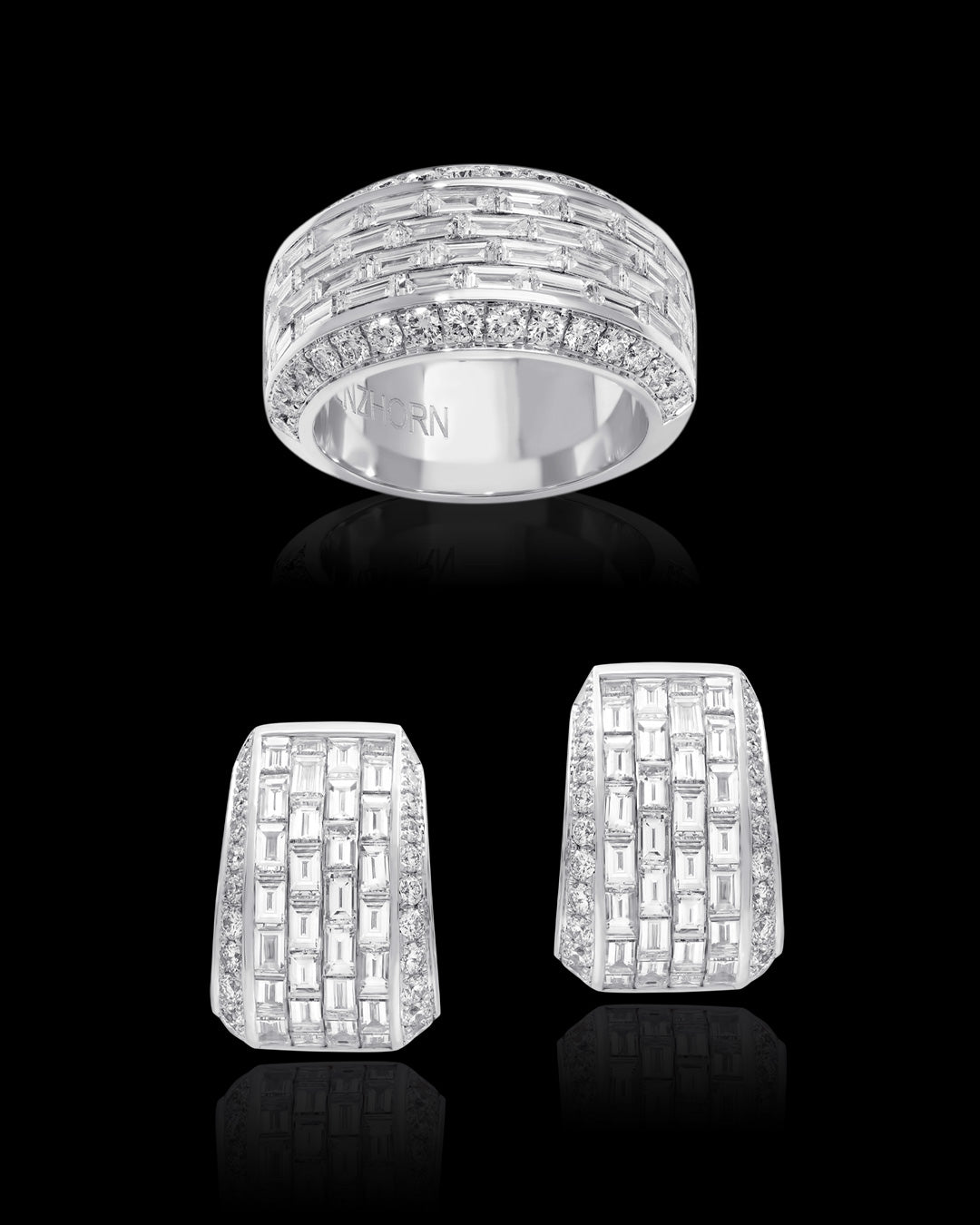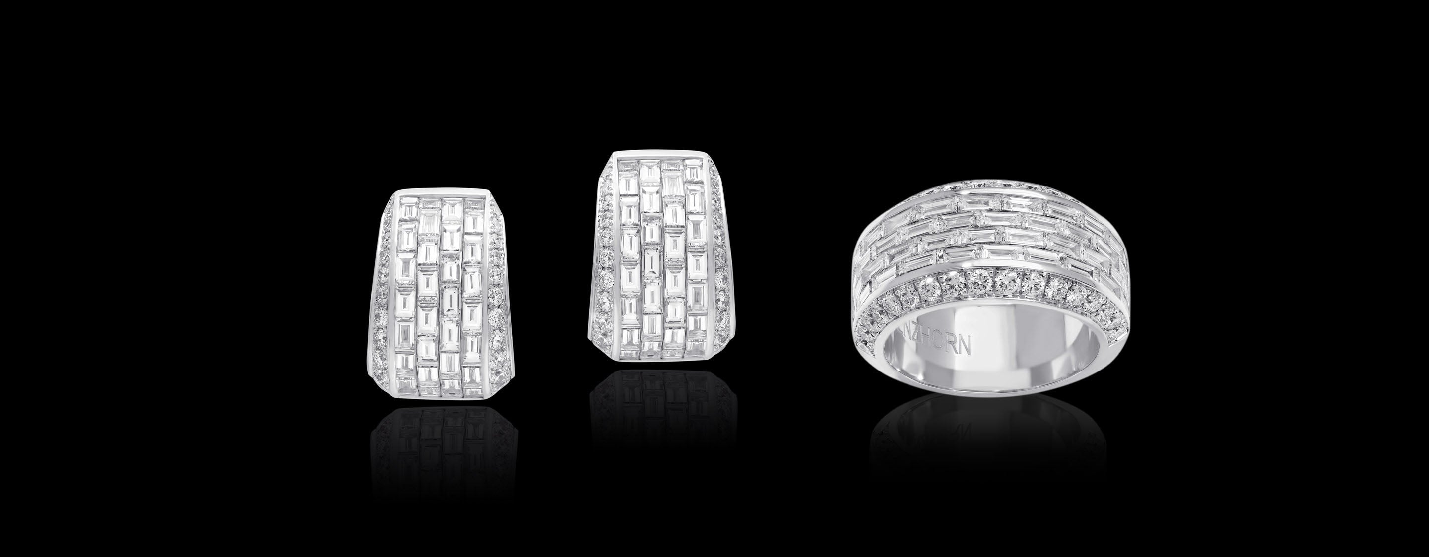 Iced Zeit is an explosion of carre‘, baguette and brilliant cut diamonds, and a celebration of Stenzhorn’s most treasured arts: the invisible setting known as mosaic and the flexible handmade technique known as Second Skin, as well as traditional channel setting.