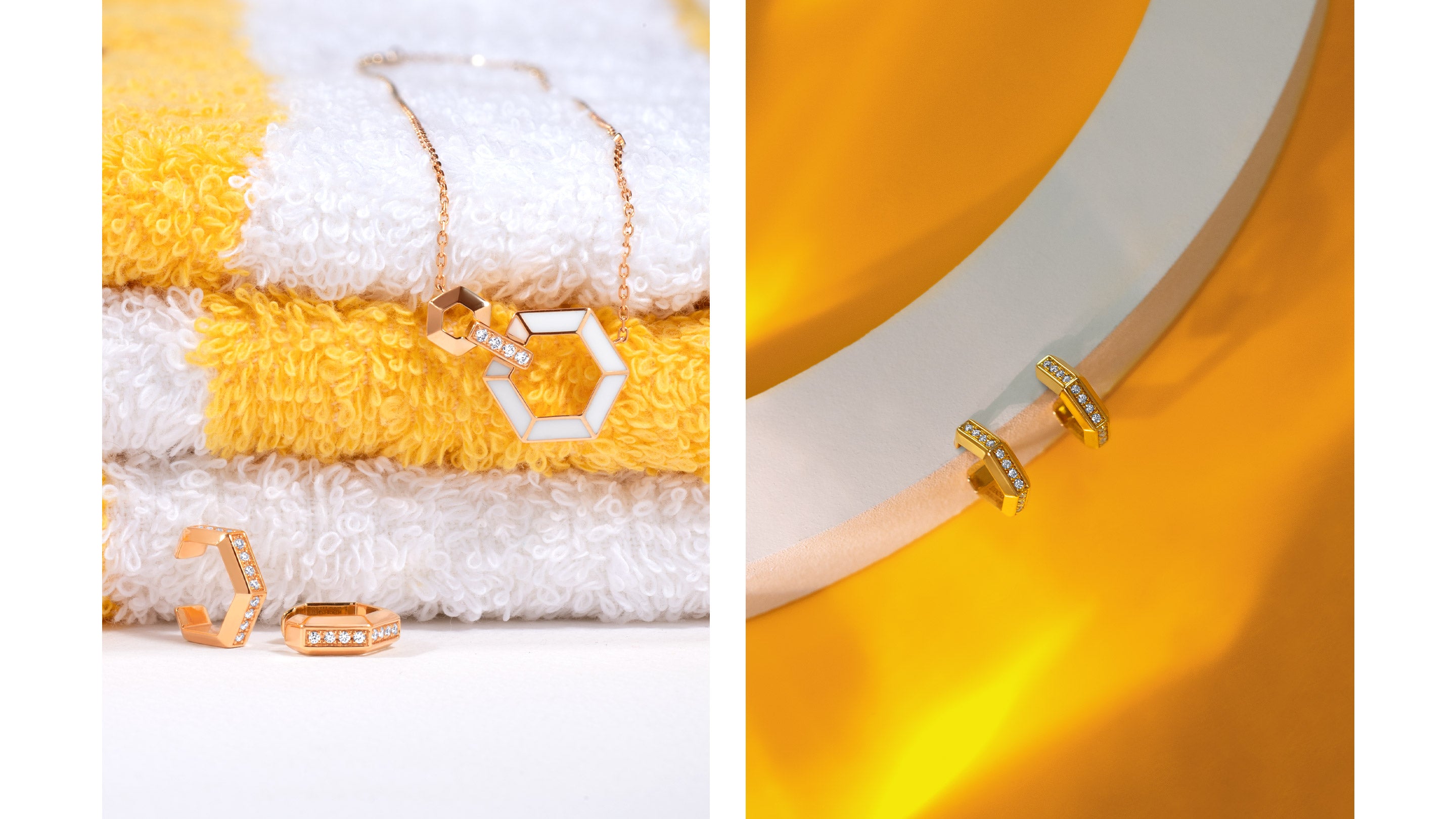 Honey Honey is intended to emphasise geometric repetition to express sweet, connective love. Stenzhorn's contemporary and highly symbolic collection gives your daily apparel a sweet touch of minimalist elegance.