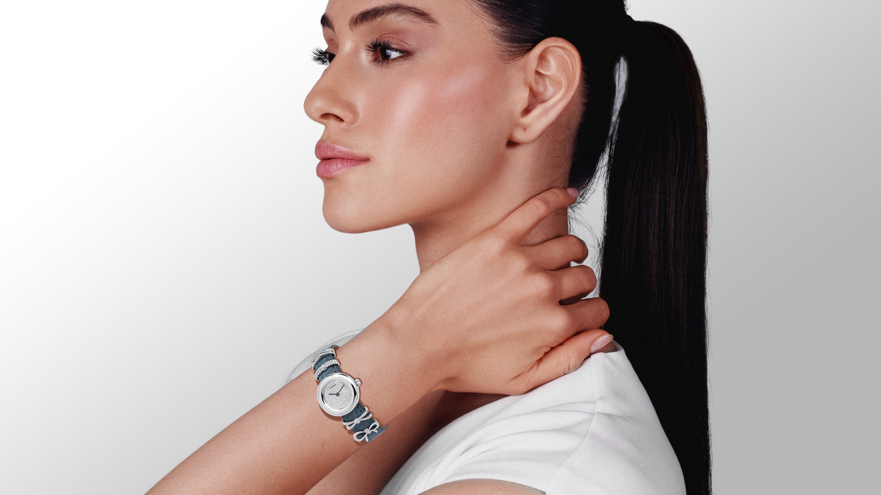 マザー・オブ・パールとダイヤモンドをあしらったフルミナフラワーなど、より手の込んだデザインは独立した存在感を放ちます。また、時計ケースの両サイドにゴールドのバーやカーブを付けるなど、自分だけのデザインも可能です。ベゼルセッティングにきらめくブリリアントカット・ダイヤモンドをあしらったアルファベット・ジュエリーは、究極のパーソナル・タッチです。