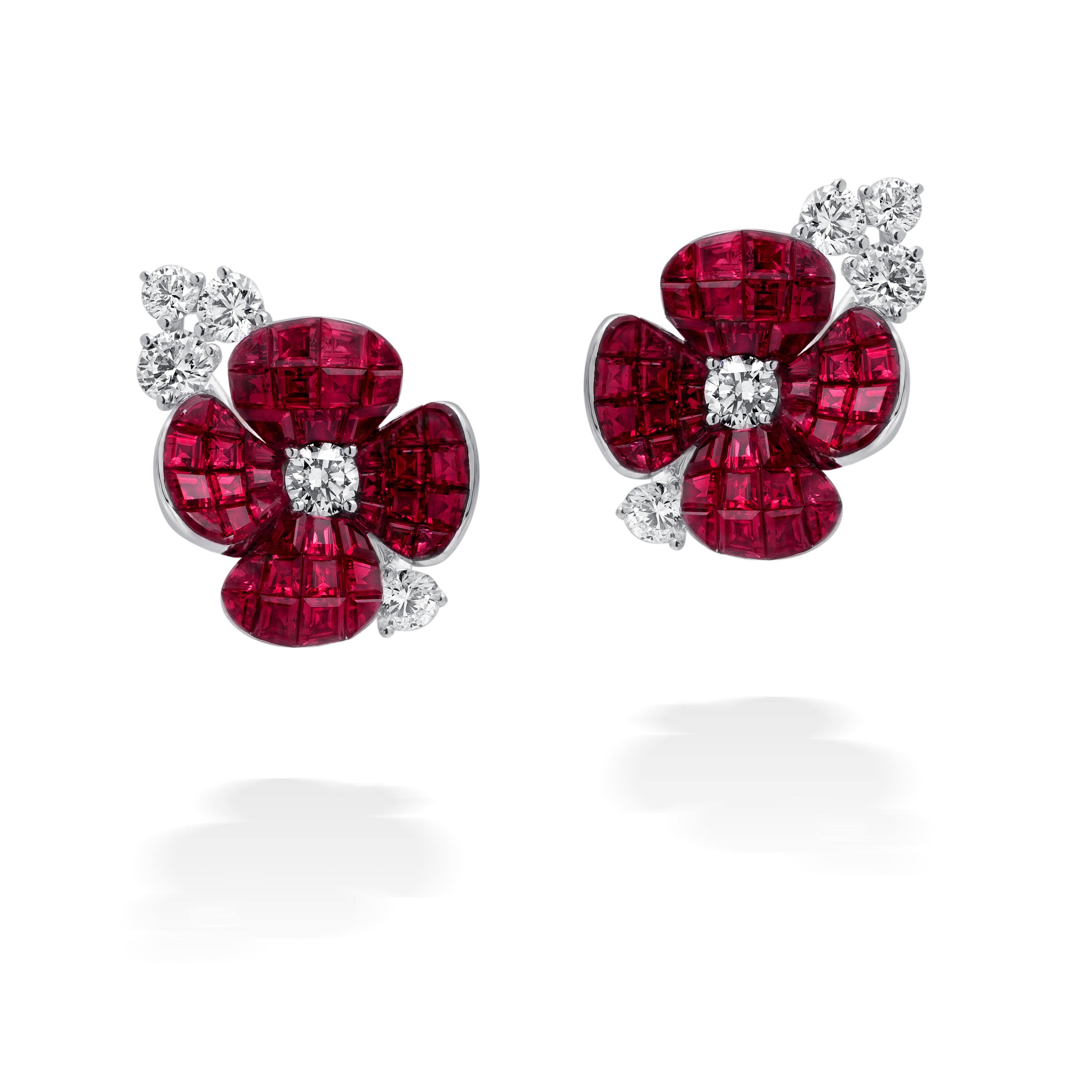 ステンツホルンは、この壮大な花々の創造的なムードをとらえ、ダイヤモンドとルビーの華麗さを通して、その遊び心と豊かさを表現しています。