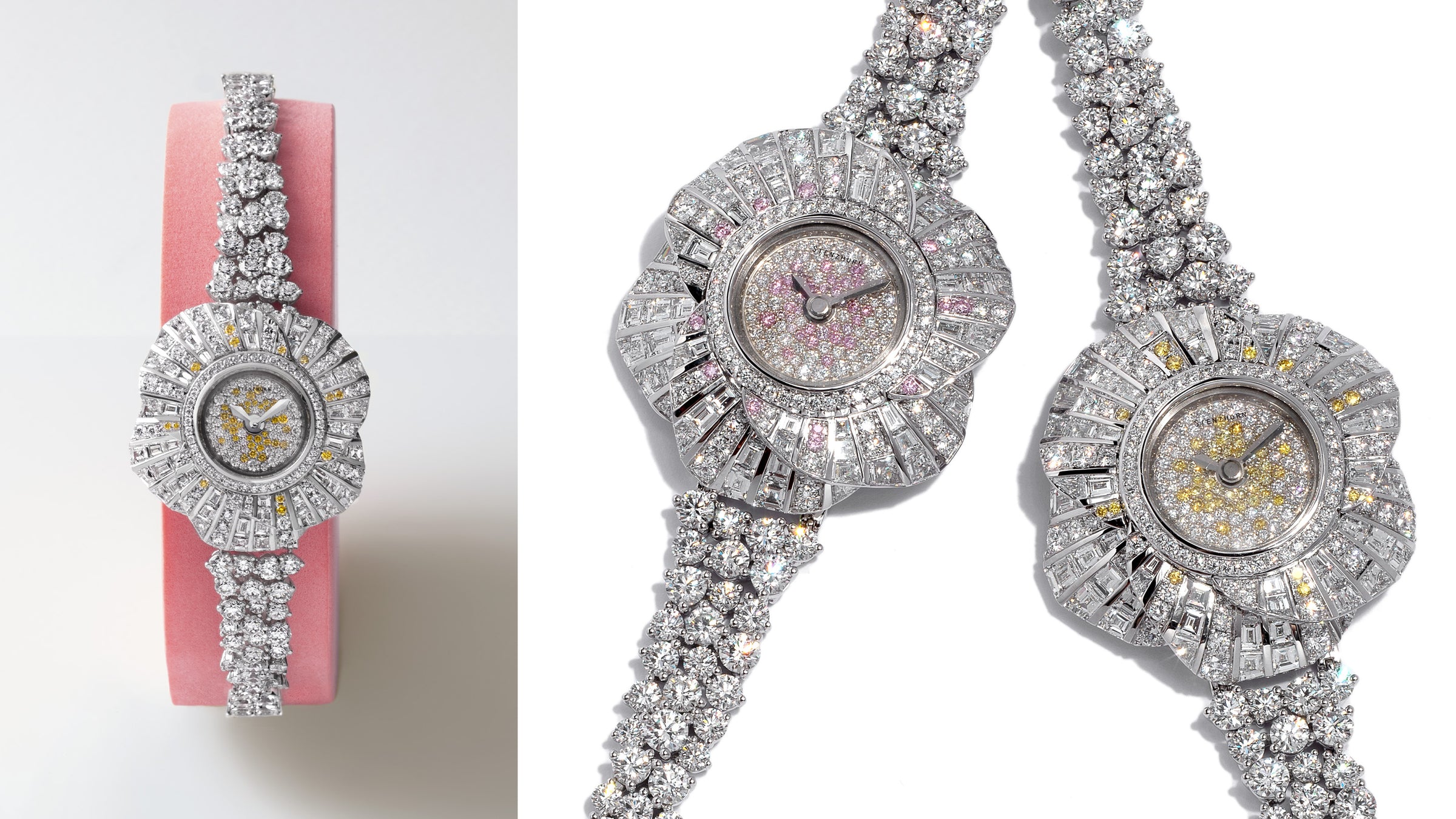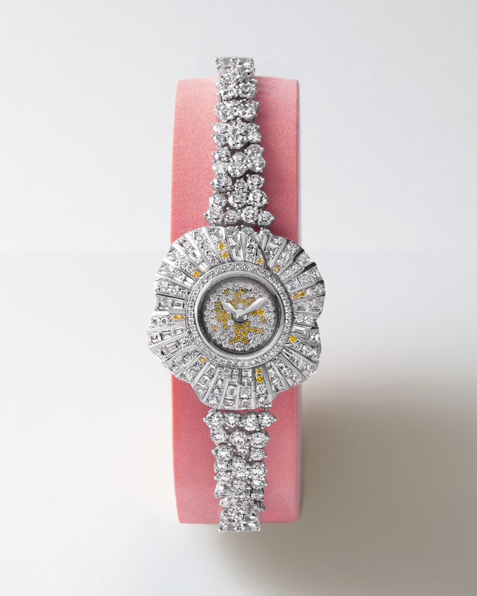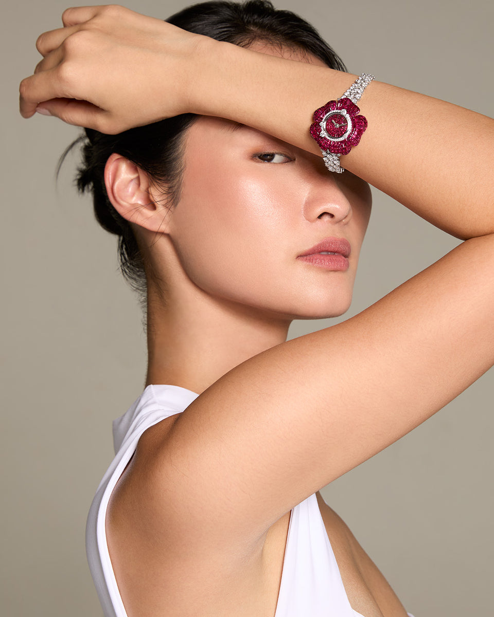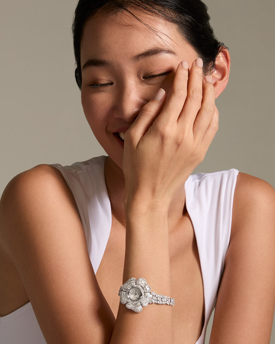 每一片花瓣和钻石都经过精心镶嵌,打造出独一无二的惊艳之作,定会让人眼前一亮。这些设计精巧的花瓣营造出令人着迷的三维效果,使这款时计与众不同。就像夏日清晨闪烁的露珠,璀璨的钻石优雅地点缀着钻石表圈,为这款手表增添了一丝魅力和浪漫。
