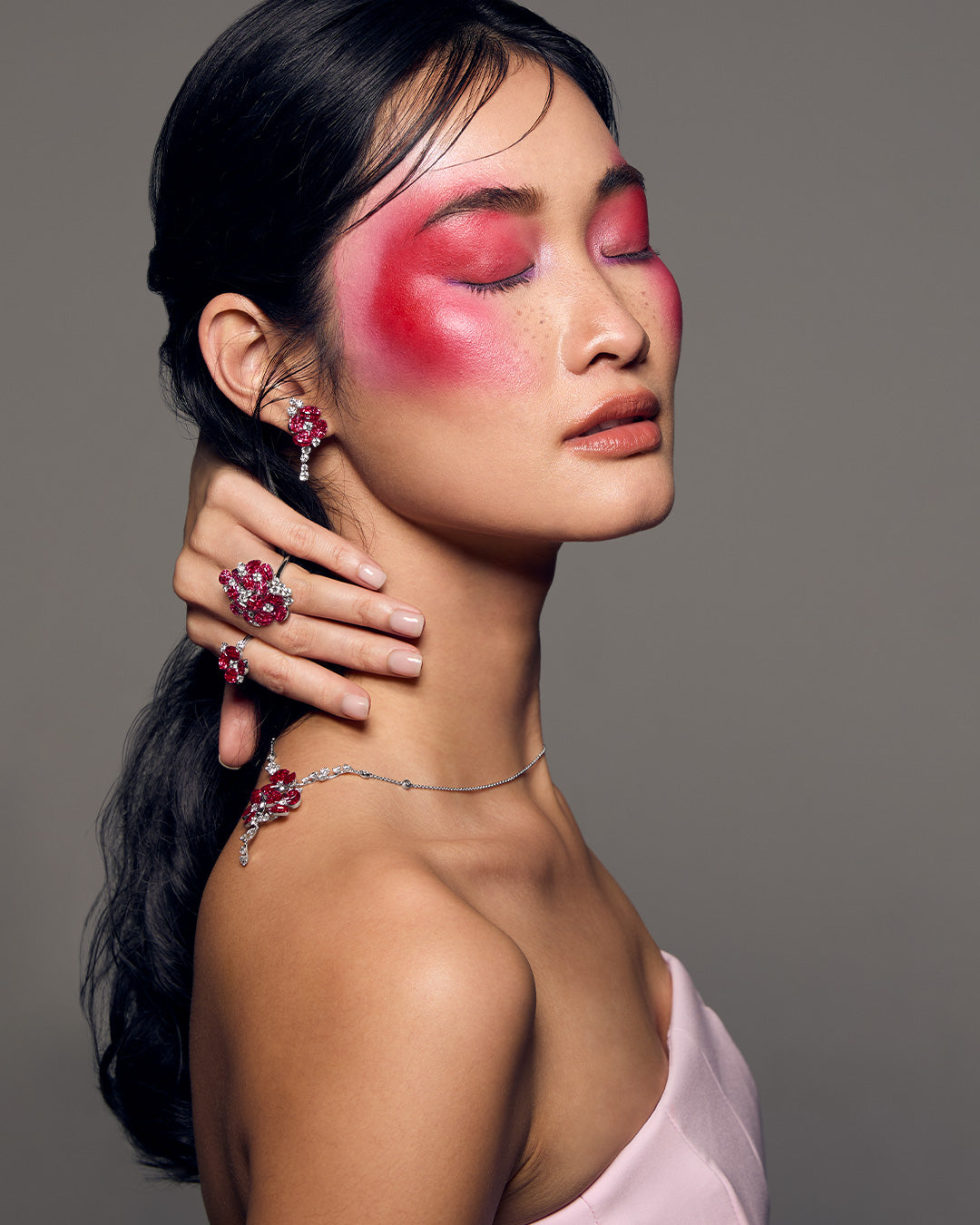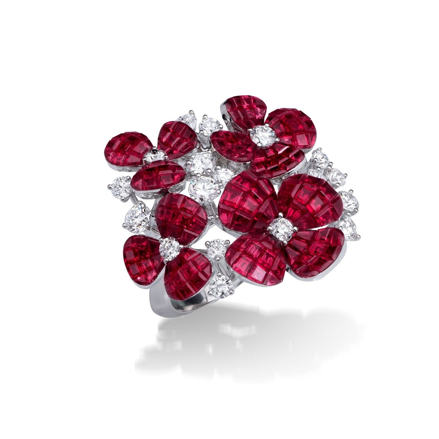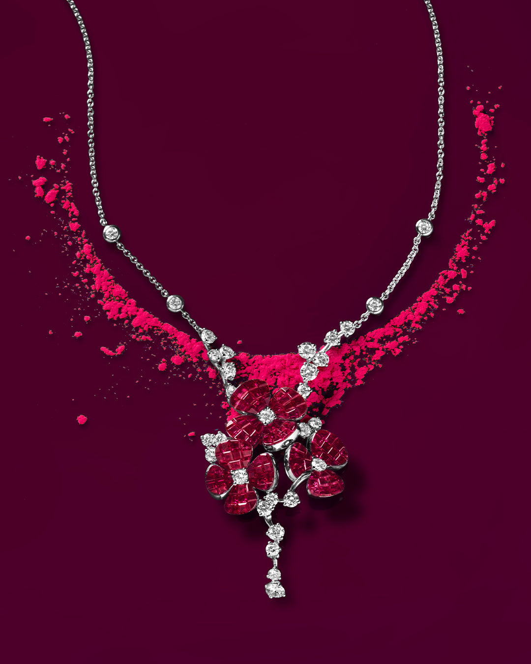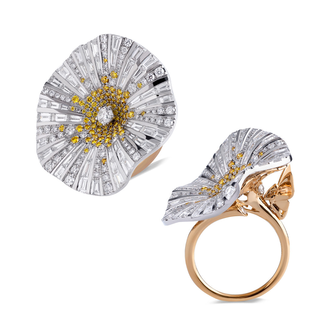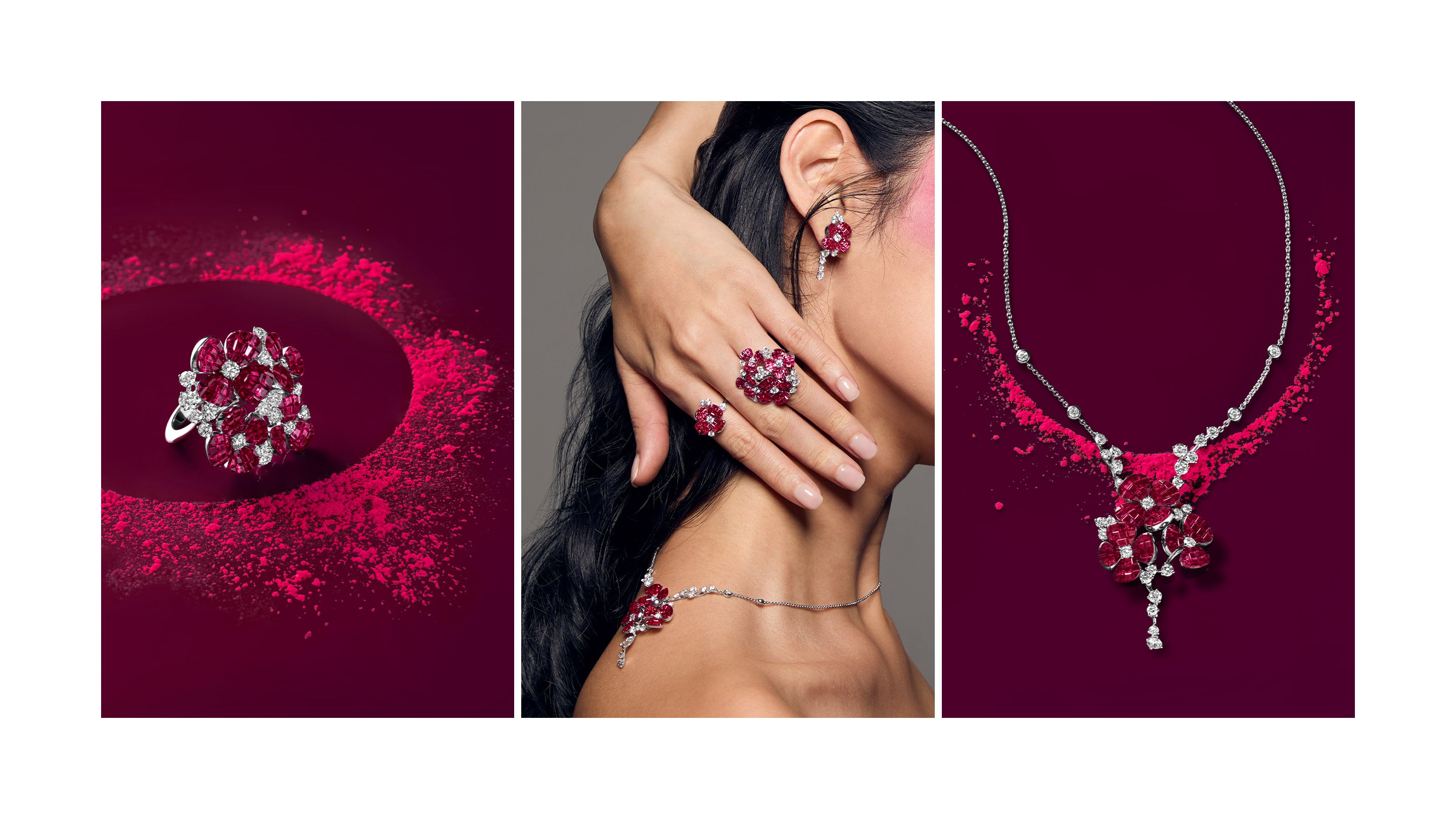 A Fior di Rosa "超越了目前 "隐形 "镶嵌的行业标准,其作品仿佛神奇地悬浮在你的皮肤上,看不到任何支撑物。这种非凡的效果得益于独特构思的 "浮动 "宝石镶嵌技术,它可以将宝石以不同的高度和角度单独隐形镶嵌。